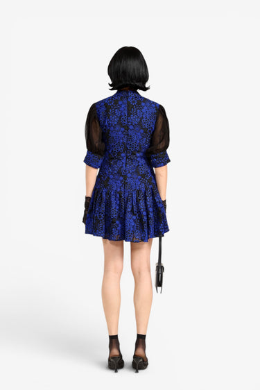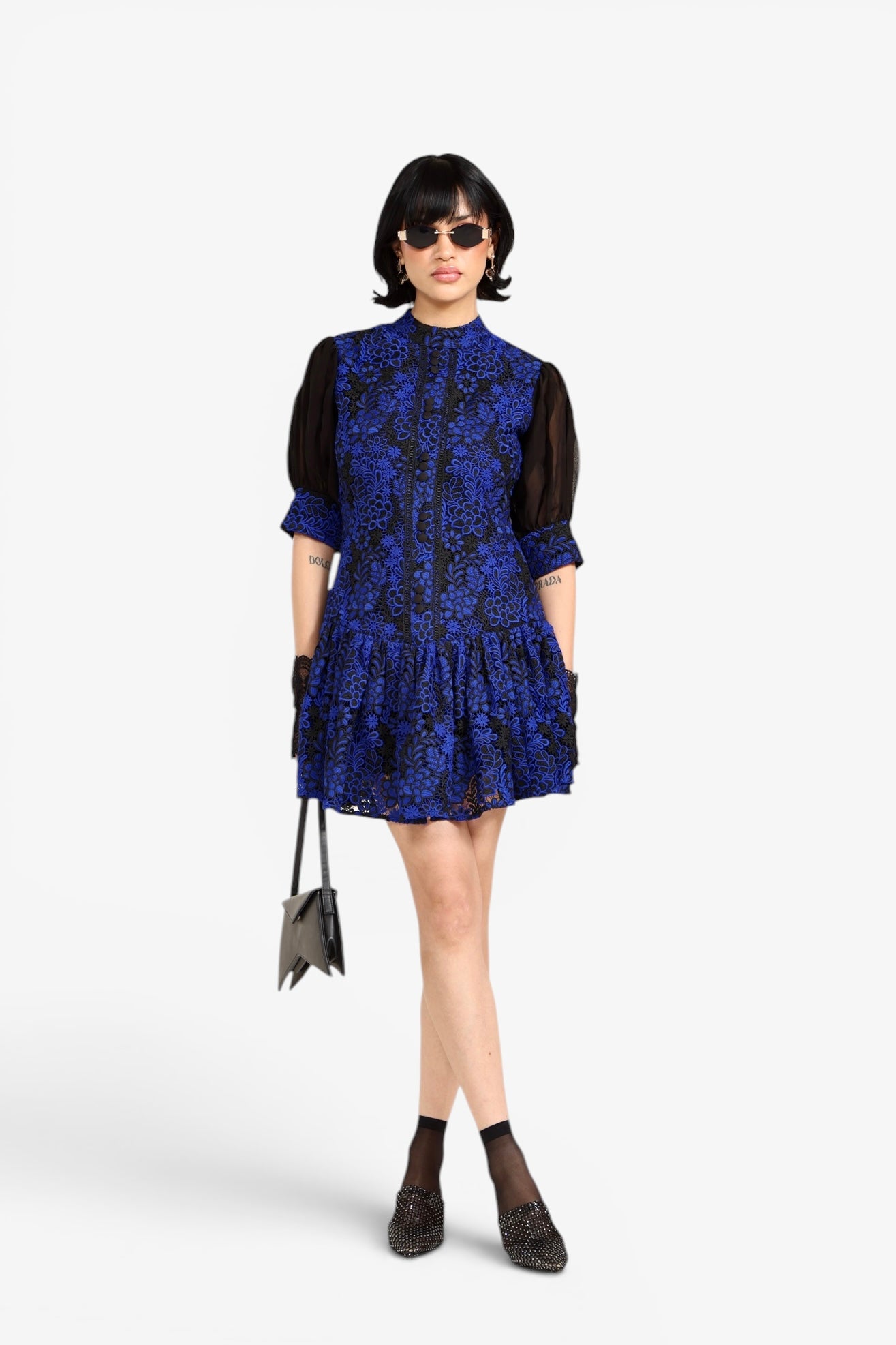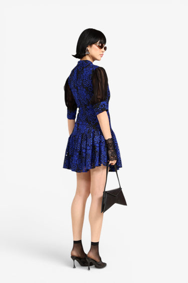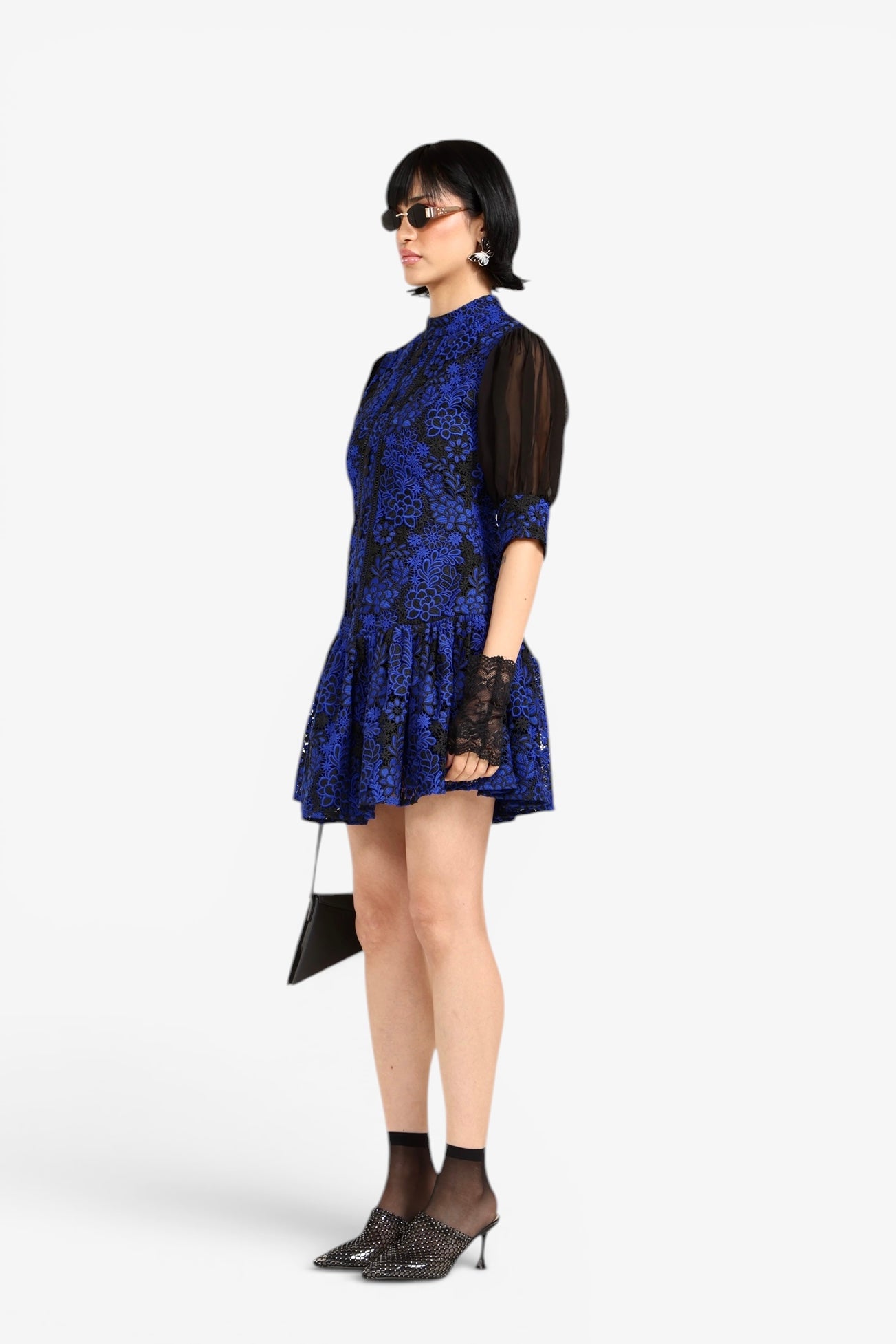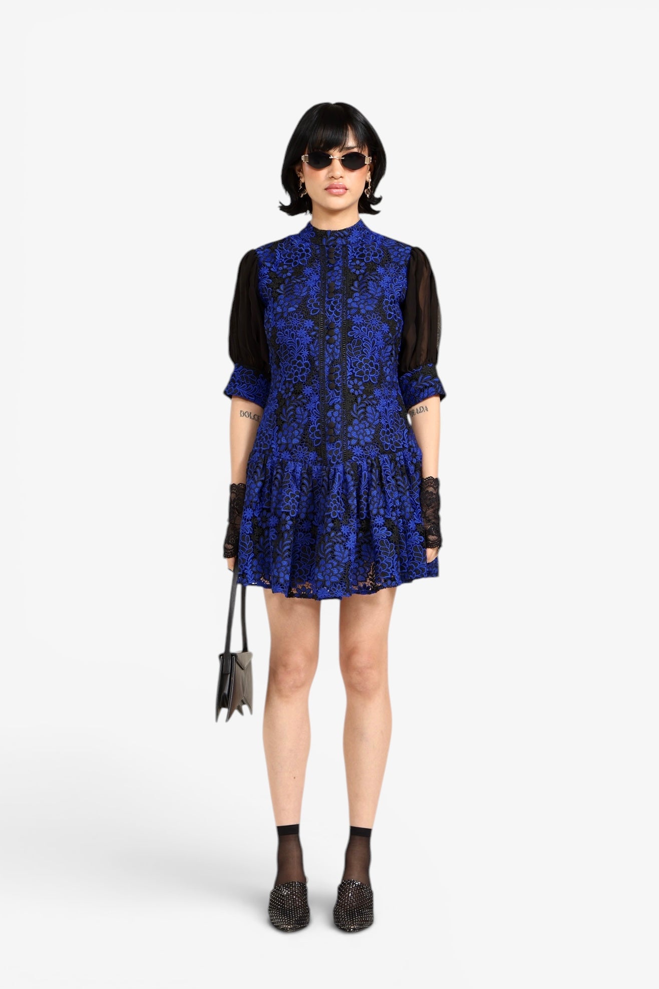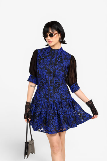 - Blue and black floral lace overlay