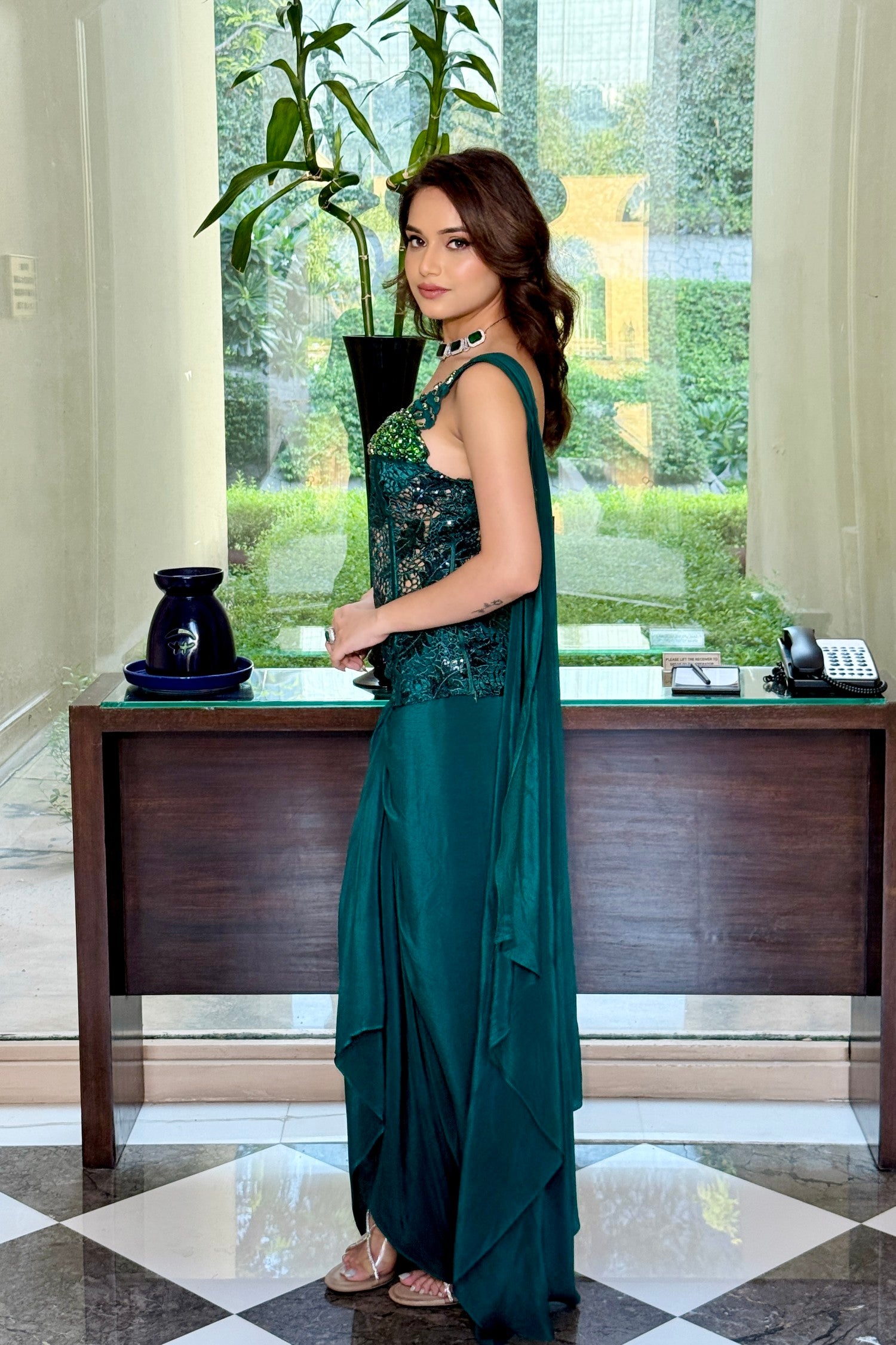 - Emerald green corset blouse