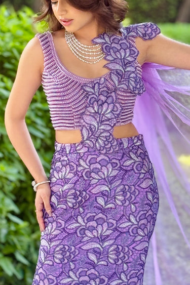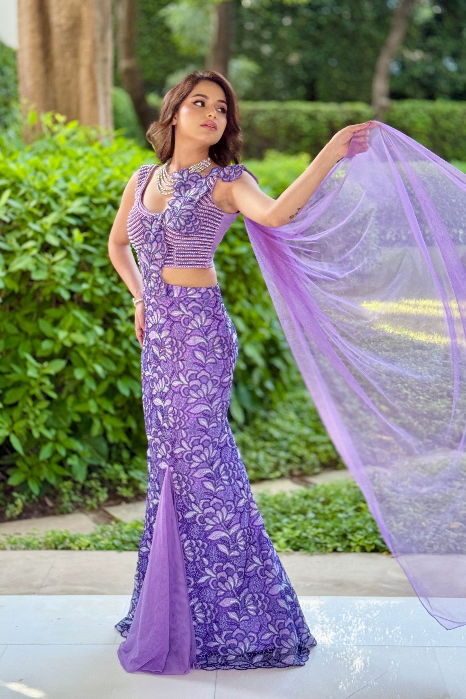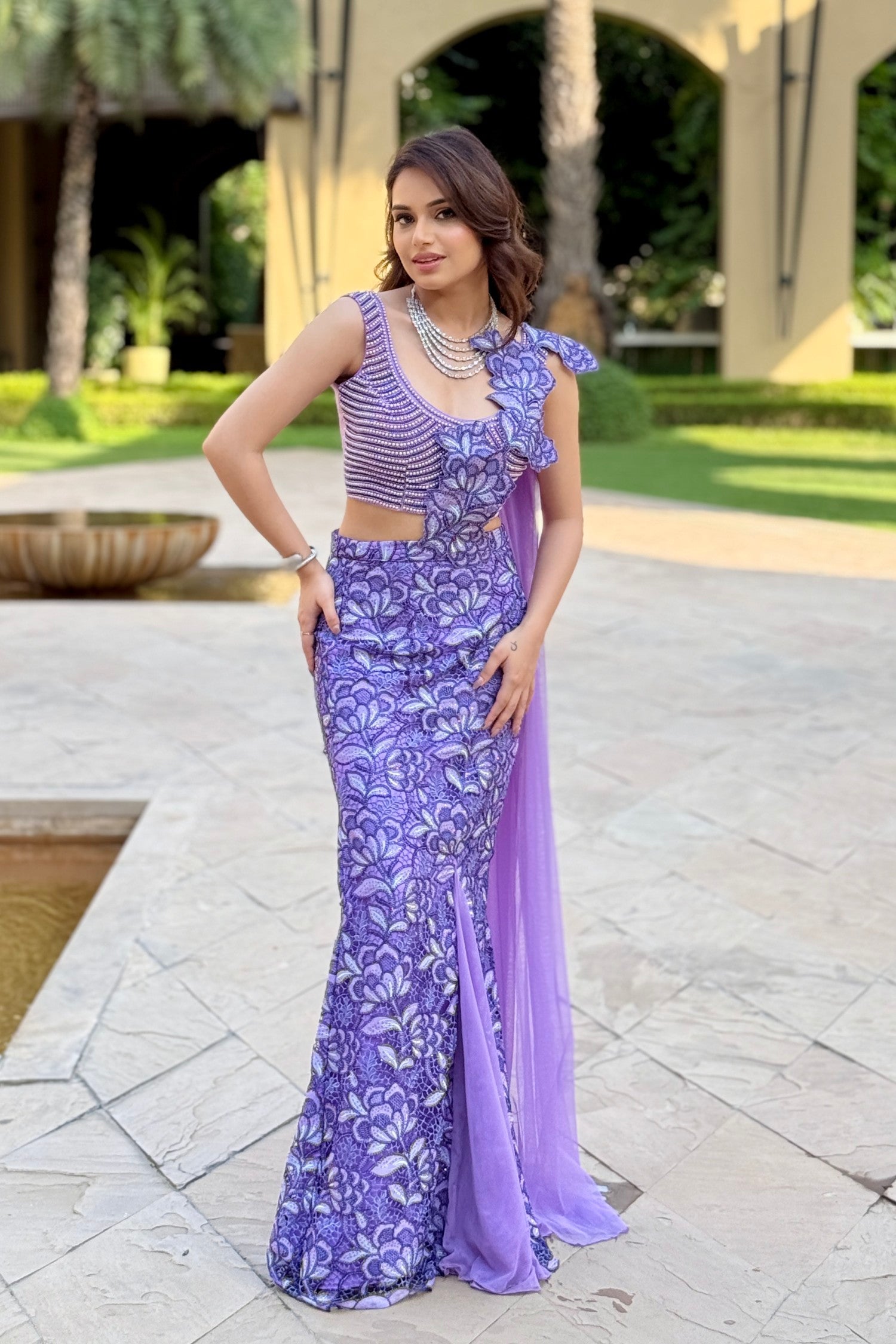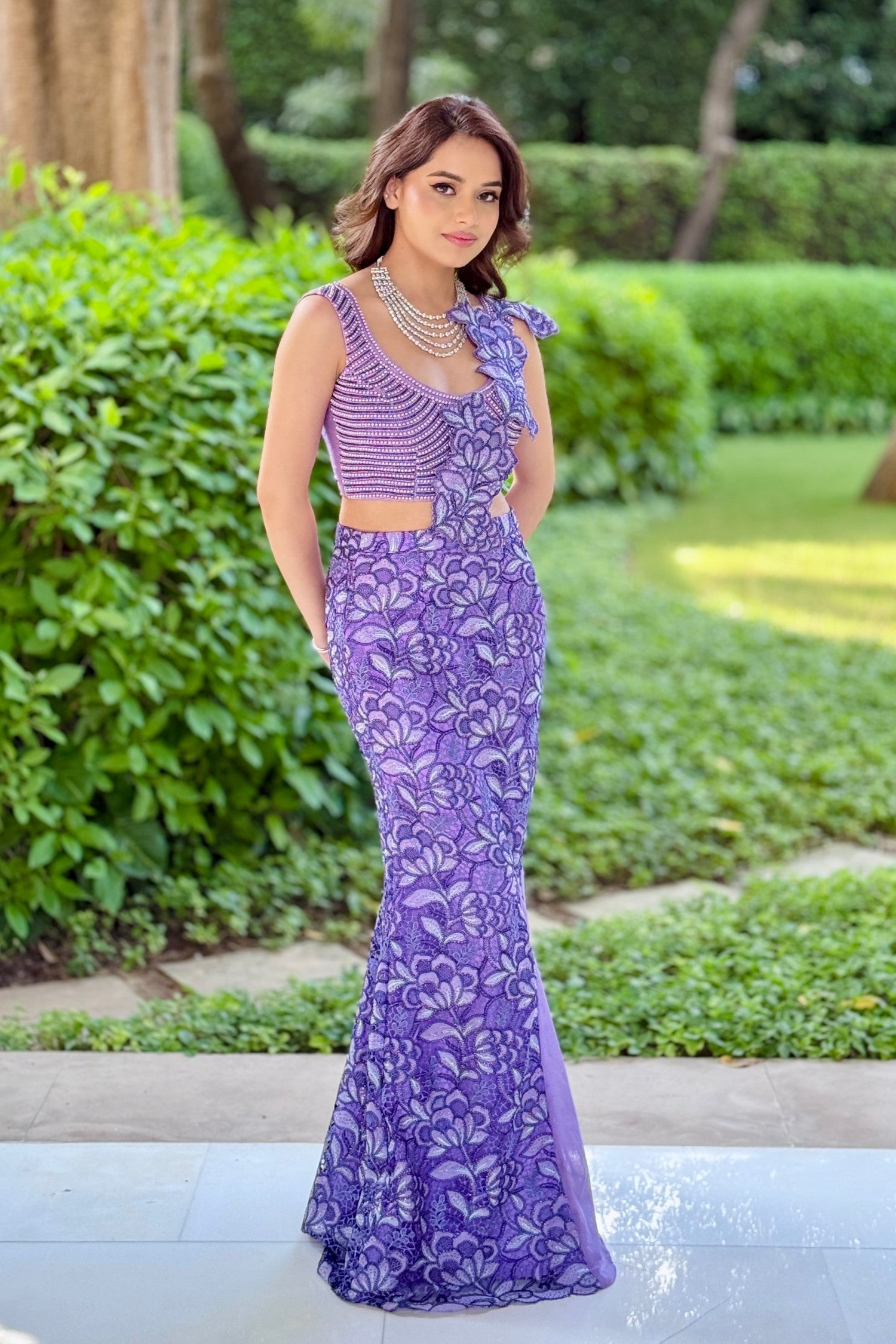 Khushi is 5'5" and wearing blouse size 'S' and skirt size '28'