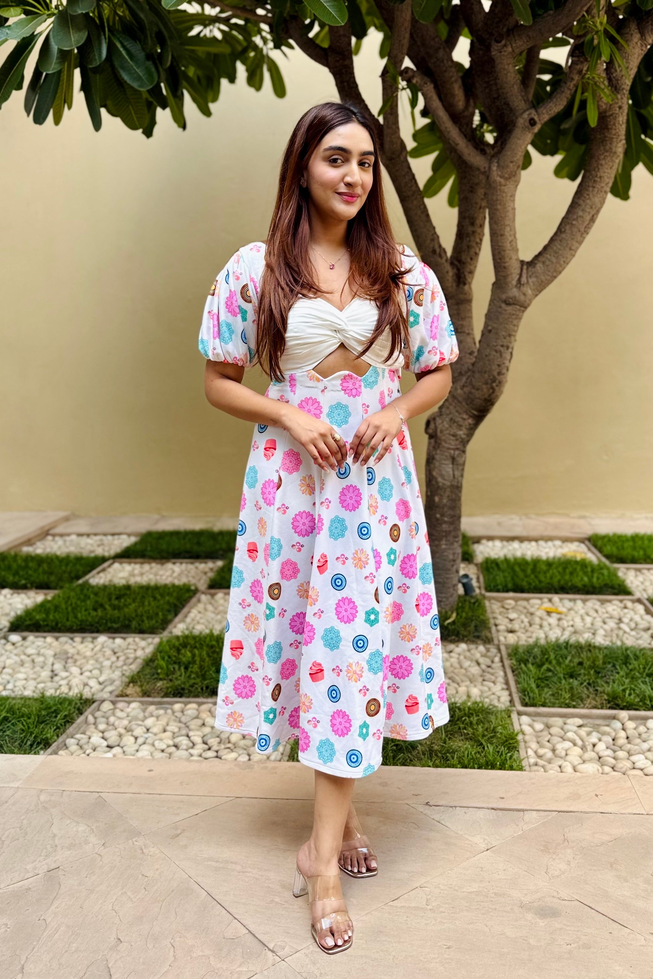 - Flared midi-length silhouette