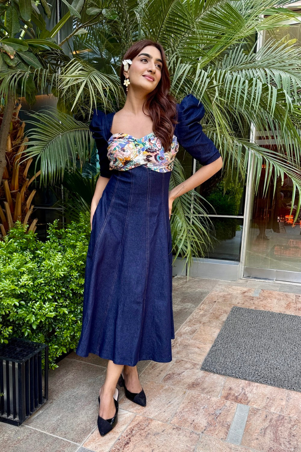 Ankita Kheterpal in Veloura Tiered Denim Dress