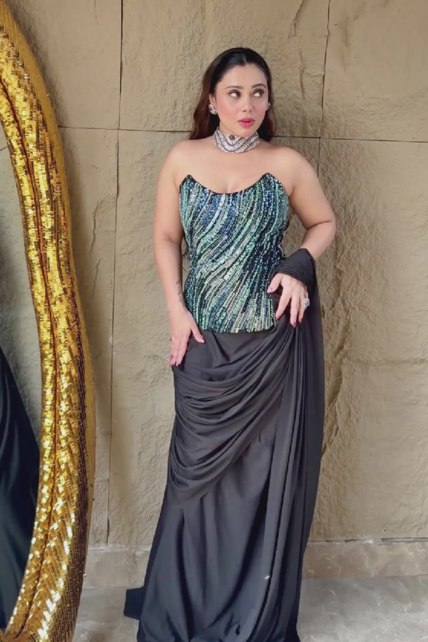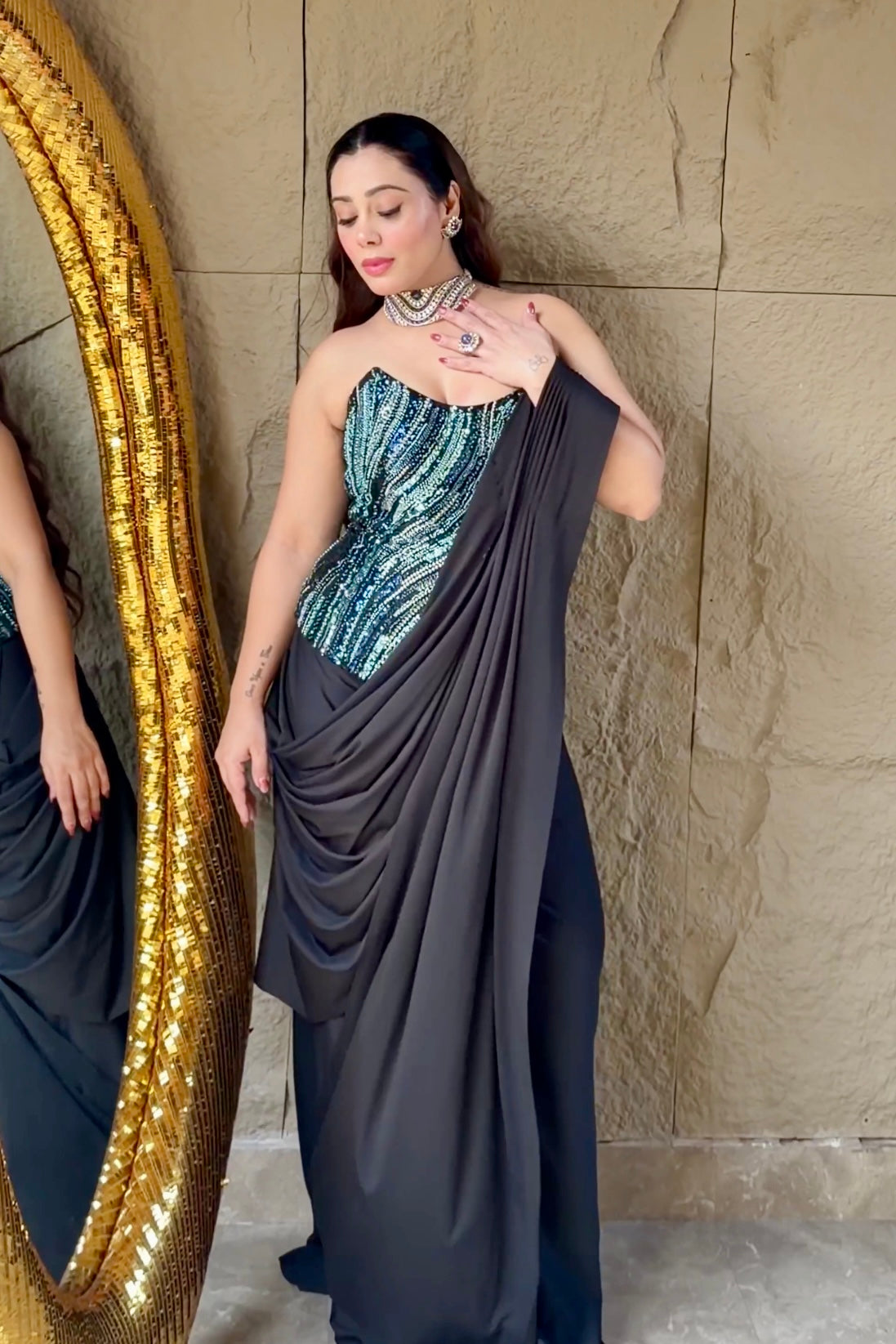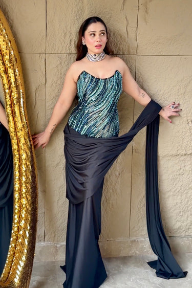 • Draped black saree skirt