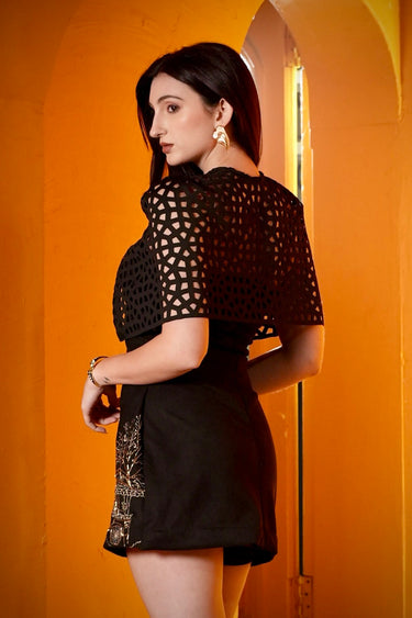 Luana is 5'8" and wearing size 'S' and length ’Mini’